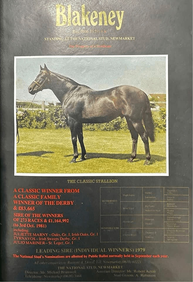 And Blakeney is the 2nd dam sire of the great 2x Leading Japan sire King Kamehameha. He is the sire of sprinter-miler Lord Kanaloa, sire of mare Almond Eye.